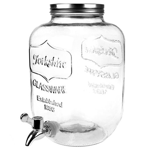 • Лимонадник стеклянный с винтовой крышкой "Погребок" 5л, 16,5х16,5см h27см, д/горловины 9,3см, с краником, металлическая крышка (диаметр основания - 13см) (Китай)
