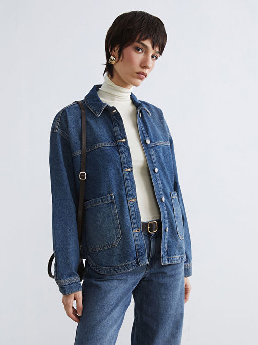 G?mlek Yaka Oversize Kad?n Jean Ceket
