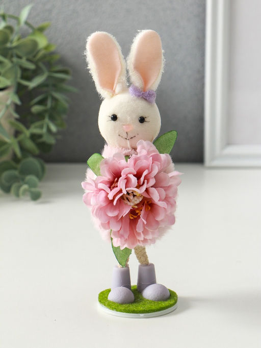 • Фигурка пасхальная Зайка в платьице с бутоном пиона в лапках, 5.5?5?19 см