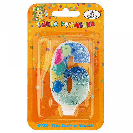 • Свеча для торта "День рождения-22" 4,4х1,2х7,7см, парафин, "Цифра 6" (Россия)