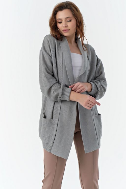 • Кардиган вязаный свободный с поясом перламутровый