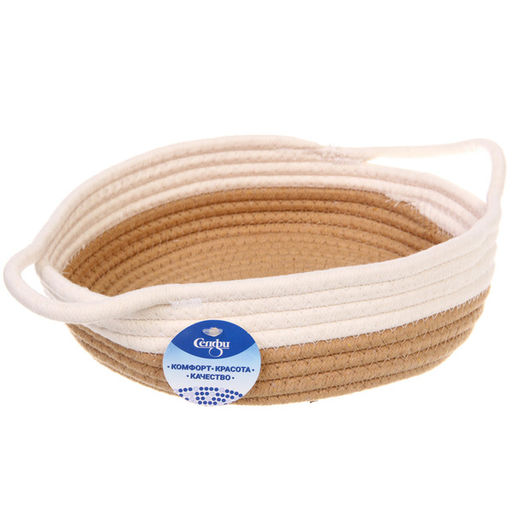 • Корзинка плетёная интерьерная с ручками "ТРЕГОРИЯ", цвет бежевый/белый, 24*7см, (лейбл селфи)