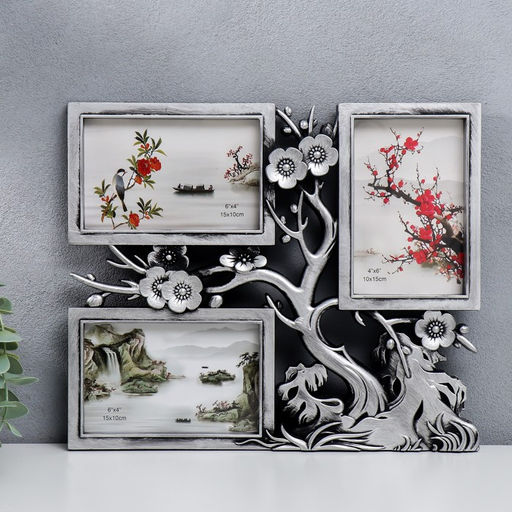 • Фоторамка - коллаж на 3 фото 10?15 см Вишнёвый сад, т. Серебро, 32?27 см