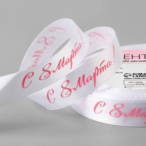 • Цена за 2 шт. Лента атласная «С 8 Марта», 15 мм, 23±1 м, белая, розовая №001