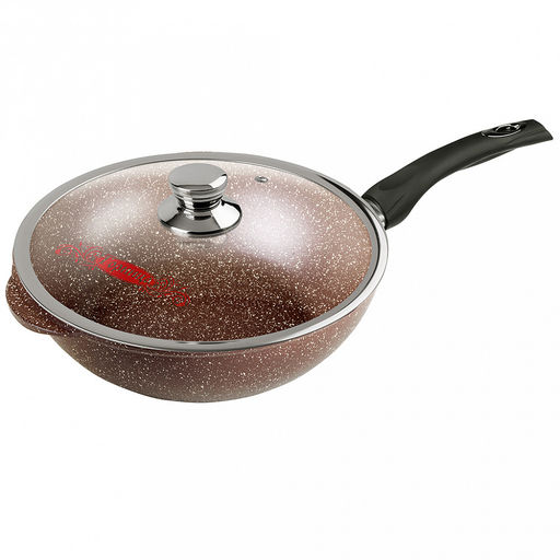 • Сотейник с антипригарным покрытием д24см "Шоколад", h8,2см, s0,4см, ручка из термостойкого пластика, стеклянная крышка с пароотводом, подарочная упаковка (Россия)