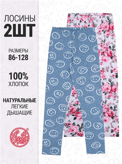2легинсов,хлопок 100%,кулир / хлопок 100%,- / букеты на светло-сером+смайлики на джинсе / - / - / - / -