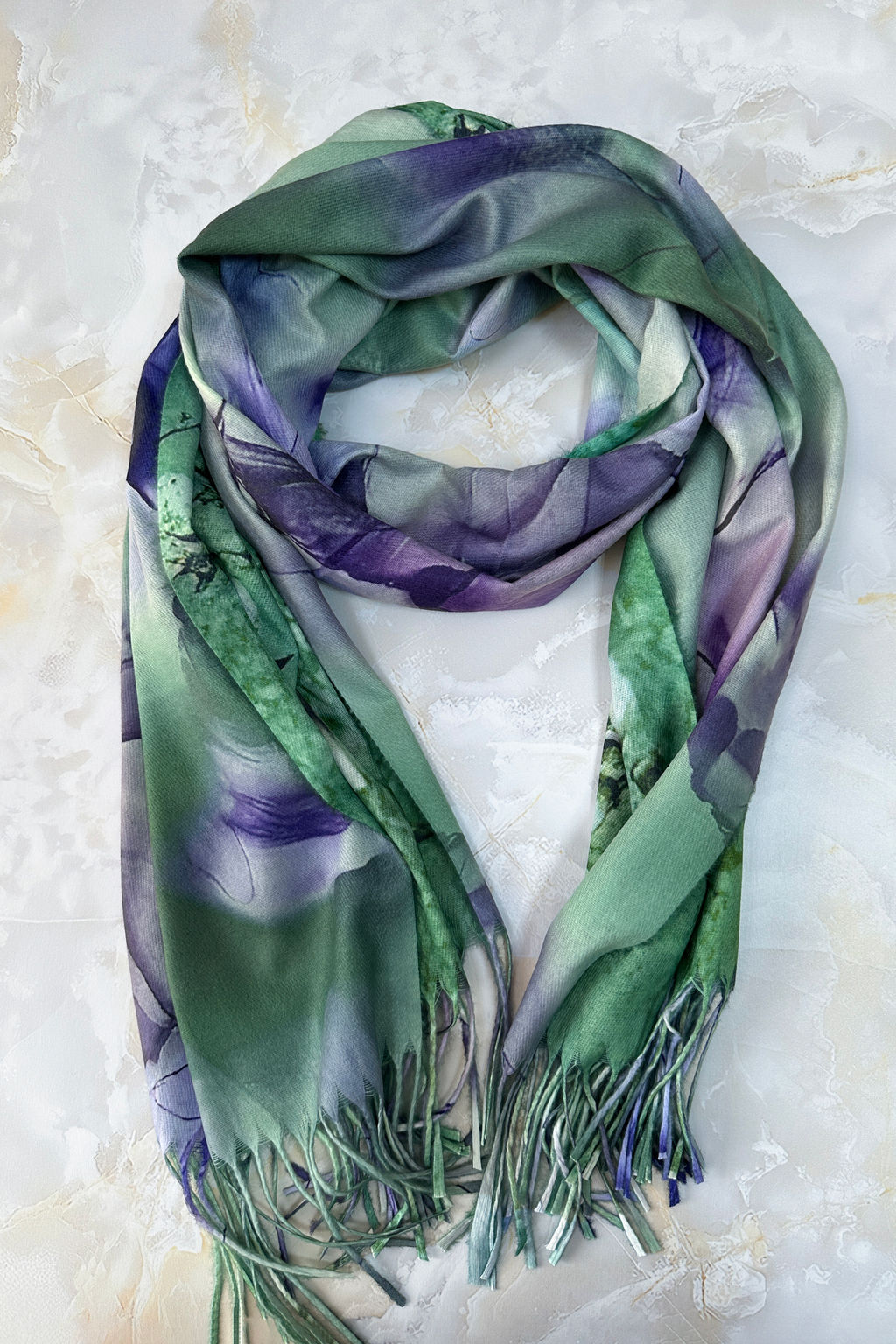 Шарф кашемировый с цветочным принтом светло-зеленый­