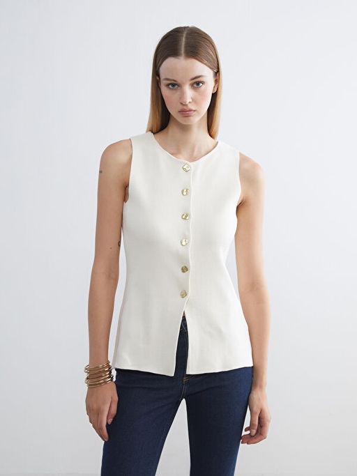 Bisiklet Yaka Kad?n Triko Yelek