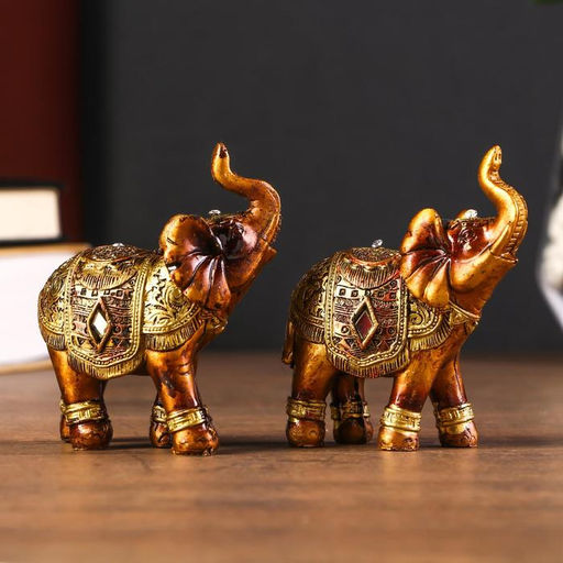 Цена за 2 шт. Фигурка полистоун «Африканский слон в золотой, ажурной попоне», 8.5×7×3 см, МИКС