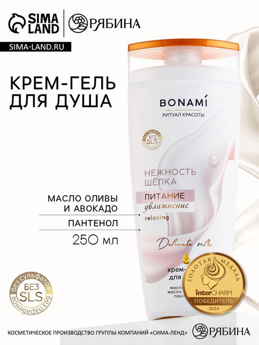 • Гель для душа женский с пантенолом, 250 мл, аромат нежности шёлка, BONAMI