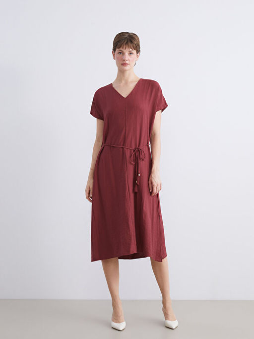 • V Yaka Dokulu Elbise