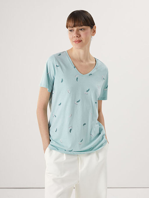 V Yaka ?i?ekli K?sa Kollu Kad?n Ti??rt