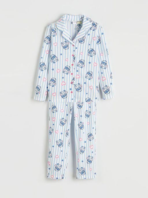 G?mlek Yaka Stitch Bask?l? K?z ?ocuk Pijama Tak?m?