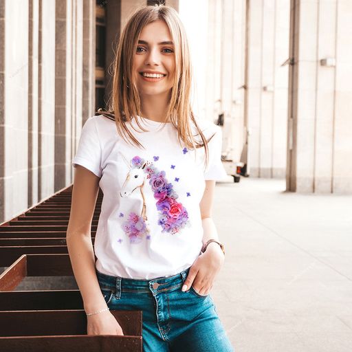 Каждый кристалл приклеивается вручную, что подтверждает прохождение 3-го этап контроля качества футболки и отсутствия производственного брака.