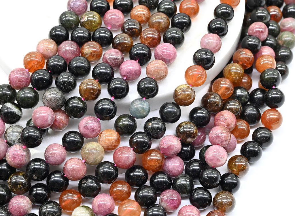 • Бусины из турмалина шарик 9мм, 38см, 43 бусины Радуга камня