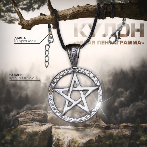Кулон «Белая пентаграмма», цвет чернёное серебро на чёрном шнурке, 45 см