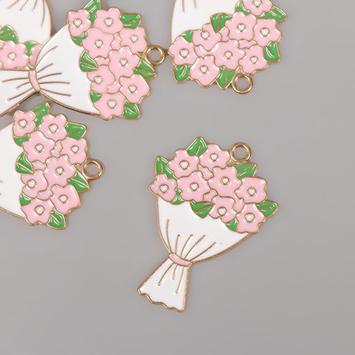 Цена за 5 шт. Декор для творчества металл, эмаль Букет цветов, 3.4?2.5 см