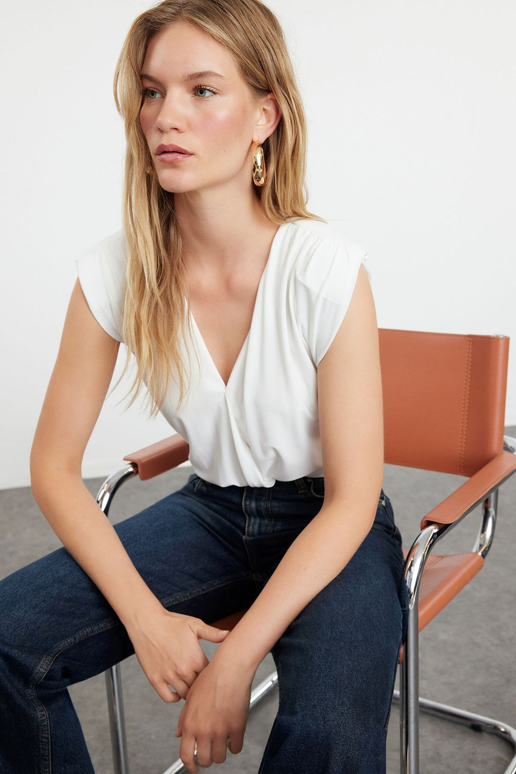 Beyaz Vatkal? Kruvaze Yaka Esnek C?tc?tl? Orme Orme Body TWOSS23BD00007