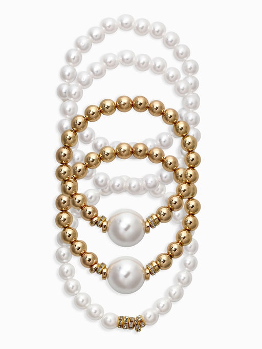 • Браслет "Стильный жемчуг" (набор 5шт), №8/16, цвет белый в золоте