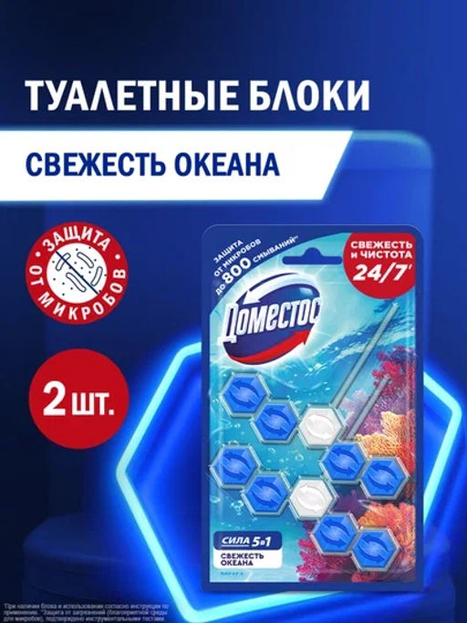 ДОМЕСТОС блок д/очищения унитаза 2х55гр Свежесть Океана