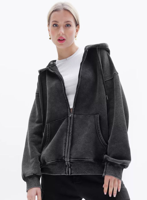 • K12079 Толстовка на молнии с капюшоном OVER SIZE (утеплитель евро мех) ГРАФИТ