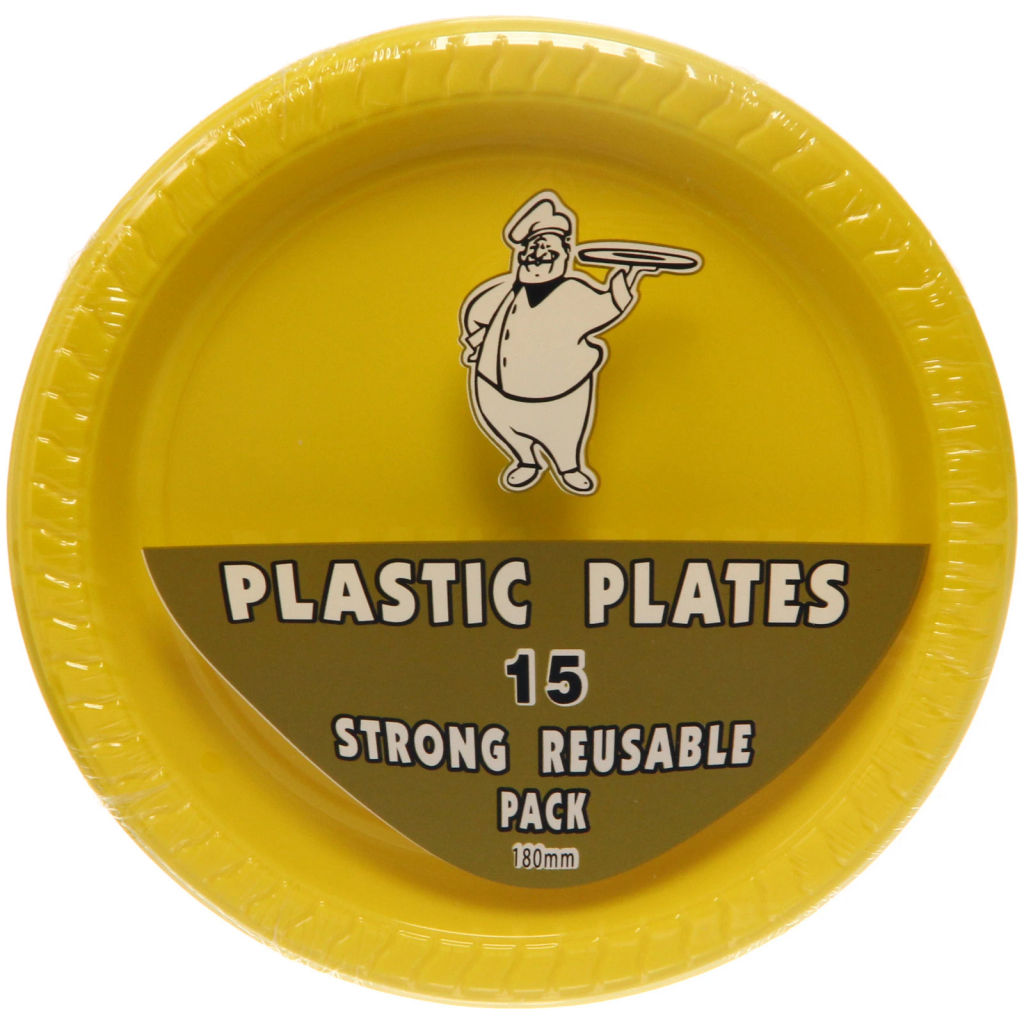 Тарелка пластиковая 18см в наборе 15шт желтая­