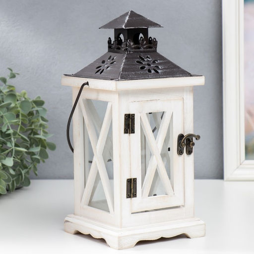 Деревянный подсвечник-фонарь на 1 свечу «Ставни», беж, 28×12.5×12.5 см