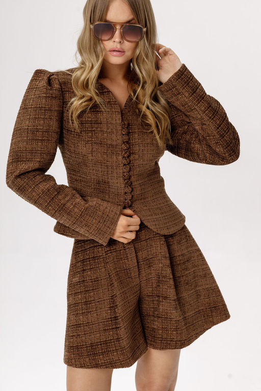Укороченный жакет из фактурной ткани (приобрести шорты с фото можно по арт. 6625).