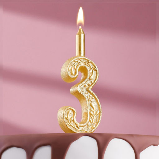 Свеча для торта цифра «Золотой узор», 10.2 см, цифра 3