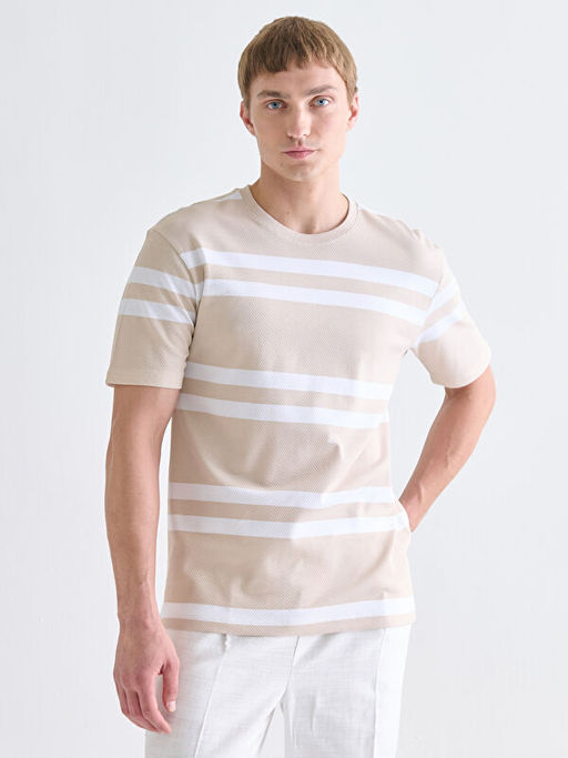• Bisiklet Yaka ?izgili Penye Erkek Ti??rt