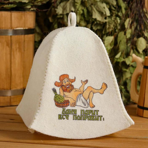 • Цена за 2 шт. Шапка для бани и сауны, с принтом «Баня парит, все поправит», полиэфир 70%, шерсть 30%, белая, «Добропаровъ»