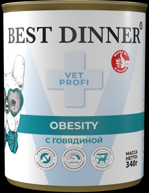 • Влажный корм для снижения и контроля избыточной массы тела для взрослых собак с говядиной Obesity 7812