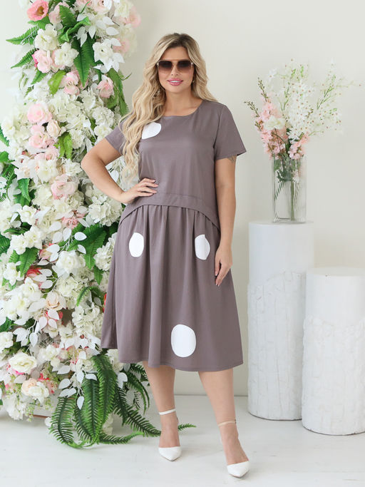 Очаровательное платье прямого силуэта из трикотажного полотна серого цвета. Круглый вырез изделия обработан внутренней обтачкой. Платье с втачнми рукавами. Перед дополнен манжетом. Длина изделия по спинке от плечевого шва до низа изделия 110 см. Рост фотомодели - 170 см.