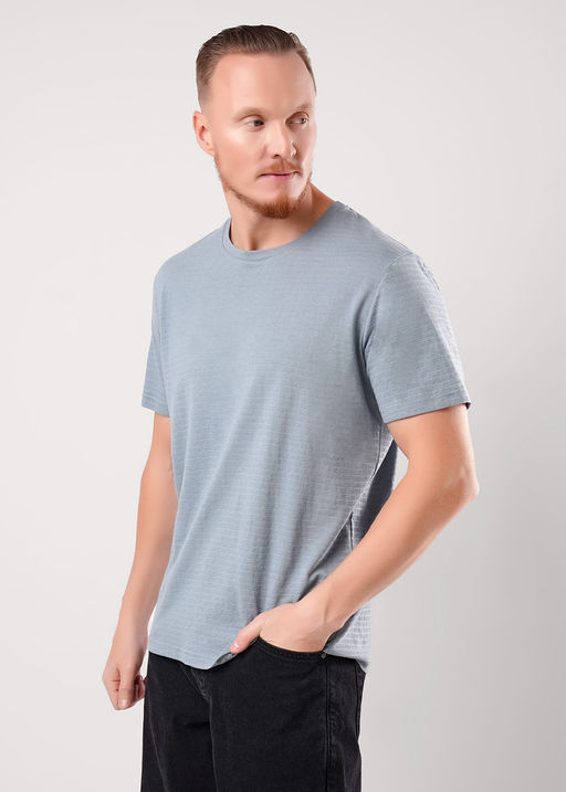 Футболка из фактурного трикотажного полотна. Изделие дополнено имиджевой фурнитурой. Подходит для работы и встреч с друзьями. 60% хлопок, 40% полиэстер