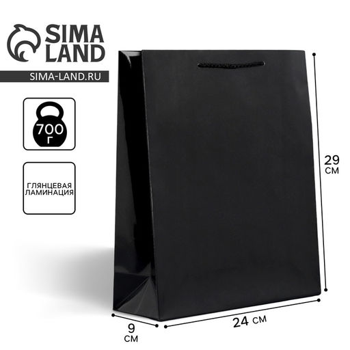 • Пакет подарочный ламинированный, упаковка, черный, M 24 х 29 х 9 см