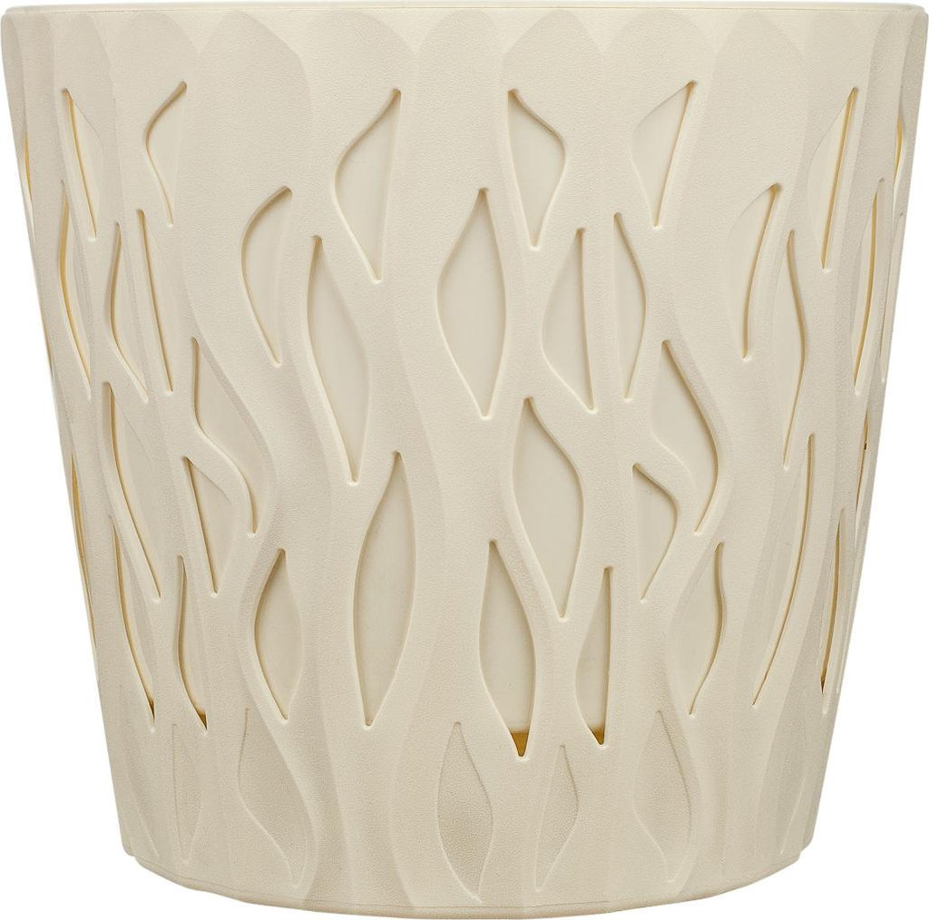 Горшок для цветов InGreen Winds D 340мм/40 л с дренажной вставкой 18,7л это стильный и практичный цветочный горшок с необычным рельефным дизайном корпуса, придающим ему особую выразительность. Фактура поверхности горшка визуально напоминает следы порывов ветра на песке, создает тактильное ощущение легкости. А игра света и тени в сквозных узорчатых вырезах, сквозь которые просвечивает внутренний горшок, добавляет композиции динамики и современной эстетики.