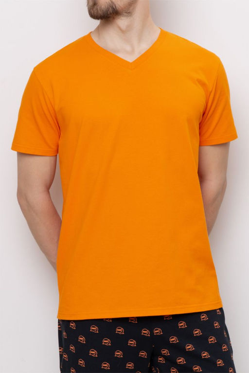 Футболка свободного прилегания с коротким рукавом и V образным вырезом горловины. Модель дополнит образ к шортам и брюкам данной коллекции, а так же любым поясным изделиям из личного гардероба.