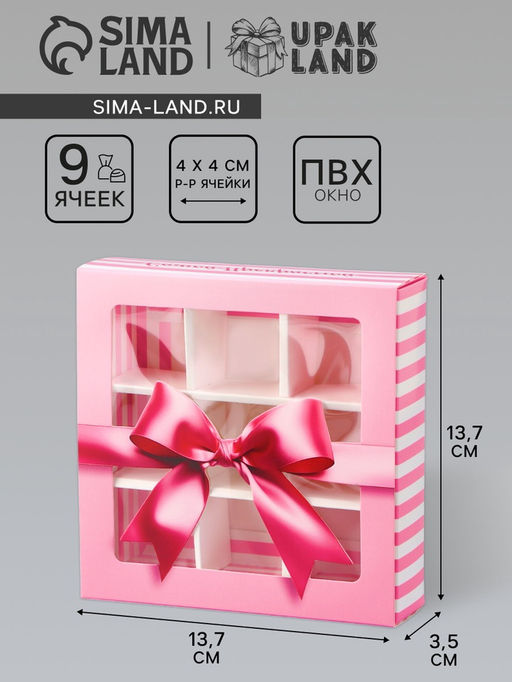 Подарочная коробка для конфет идеальный вариант для создания праздничного настроения на 14 февраля, 8 марта. Она вмещает ровно 9 конфет, что делает её компактной и аккуратной, но в то же время способной подарить массу удовольствия.