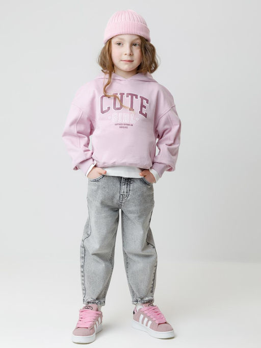 Худи с капюшоном для девочки из тёплого футера с начёсом. Модель оверсайз. Пояс и манжеты выполнены из мягкого эластичного трикотажа. Худи сохраняет форму и стойкий цвет после многочисленных стирок и идеально подходит на каждый день. Оригинальный принт выполнен из стойких текстильных гипоаллергенных красителей. Все трикотажные полотна производятся в соответствии с нормами швейцарского сертификата ЭкоТекс.. Состав: 80% хлопок, 20% полиэстер