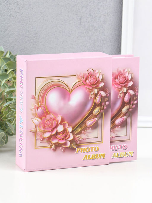 Фотоальбом на 40 фото 10×15 см «Розовое сердце в цветах», в коробке, 4.5×14×17 см