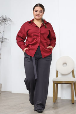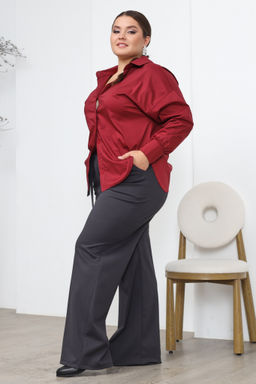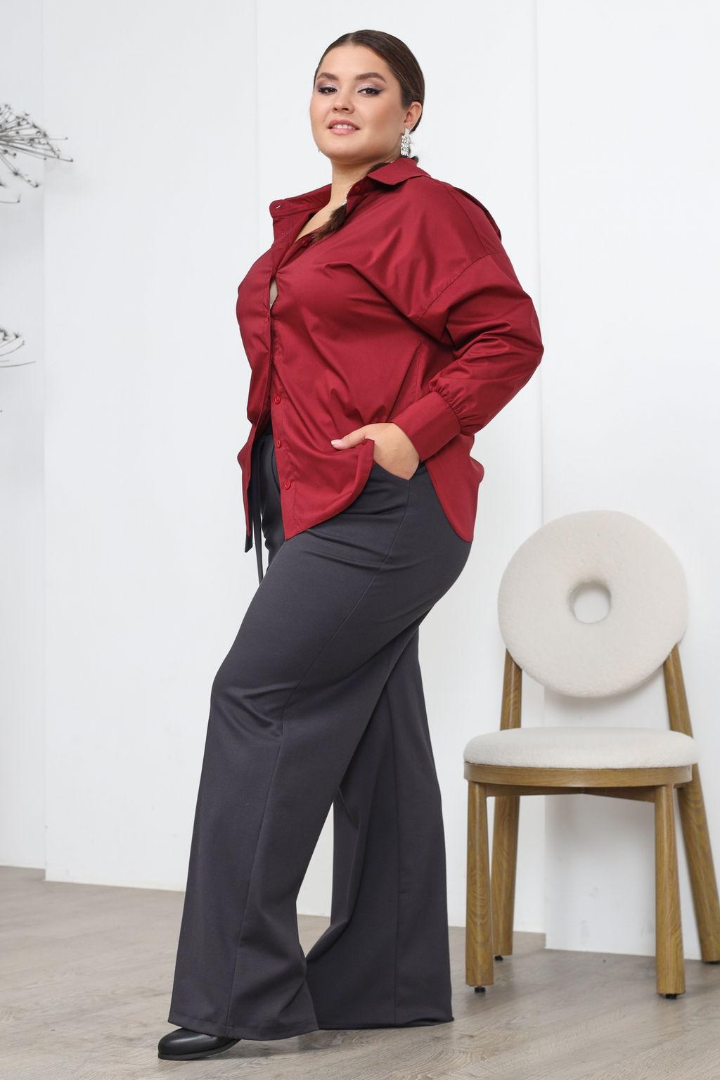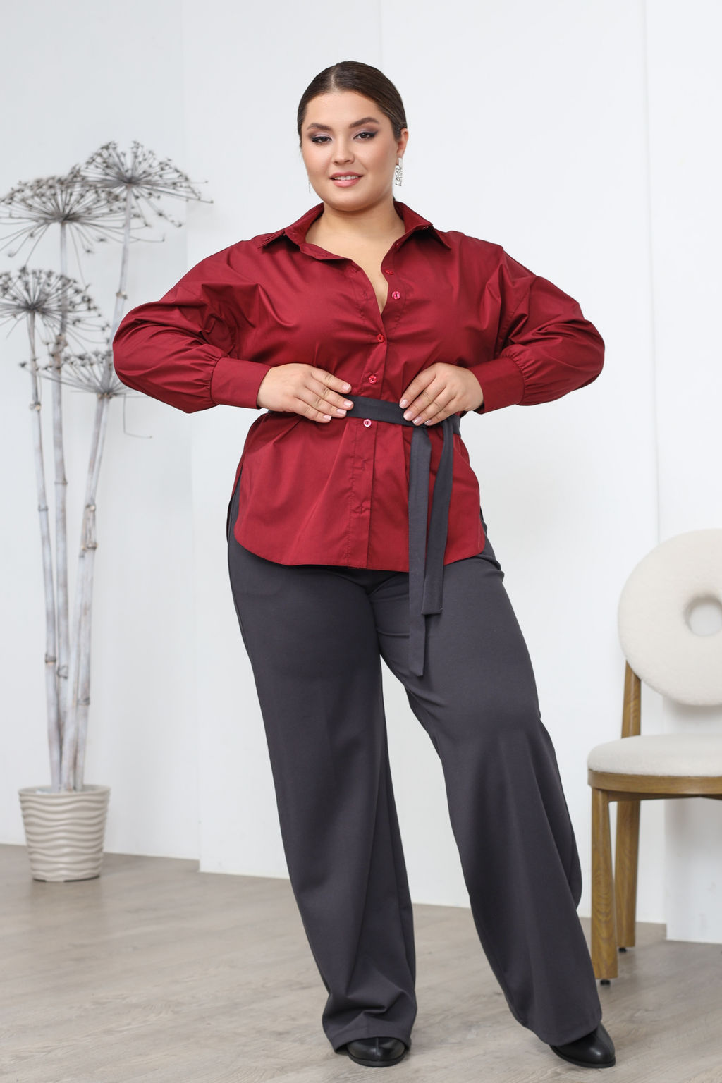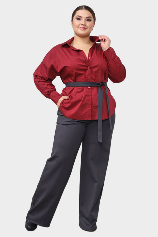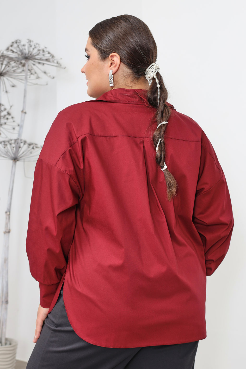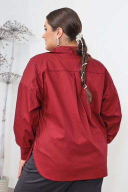 Рубашка с воротником-стойкой и складчатыми элементами на средний рост бордовая