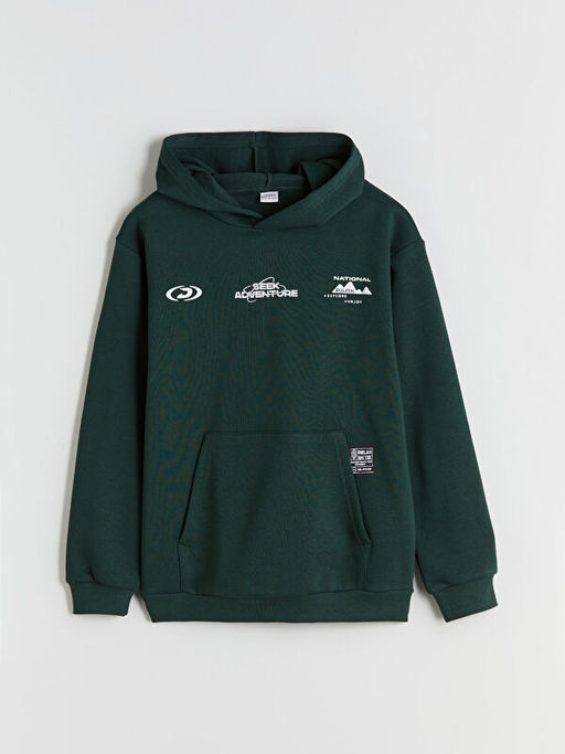 Kap??onlu Bask?l? Erkek ?ocuk Sweatshirt