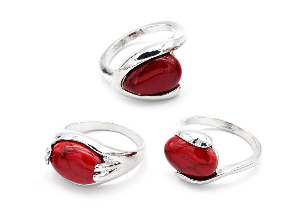 • Кольцо с кораллом (имитация), овал, размер 18 Радуга камня