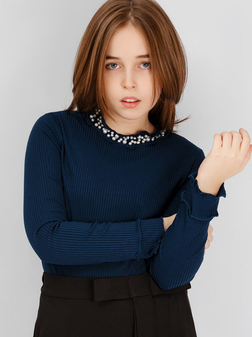 Водолазка для девочки Соль&Перец, декорированная жемчугом. Водолазка прекрасно сочетается как с юбкой и сарафаном, так и с брюками, подчеркнет индивидуальный стиль девочки, и разнообразит ее повседневный школьный образ.