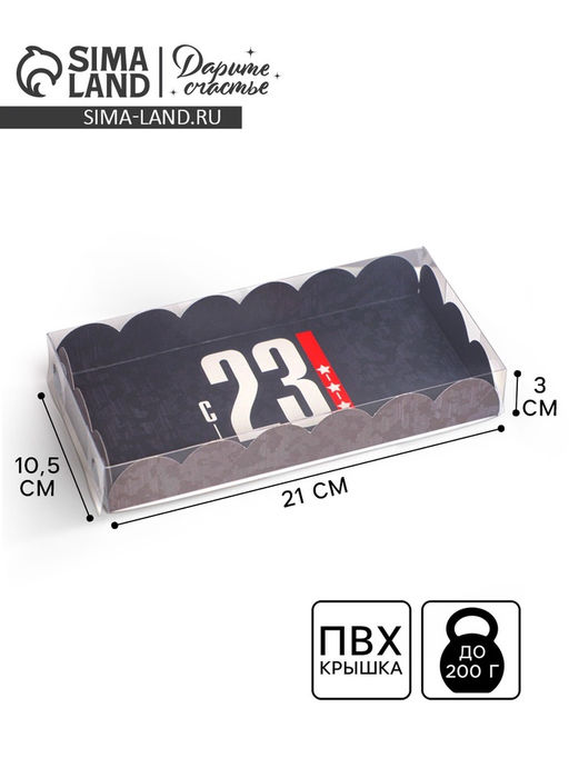 Цена за 5 шт. Коробка для печенья, кондитерская упаковка с пластиковой крышкой, «23 февраля», 10.5×21×3 см