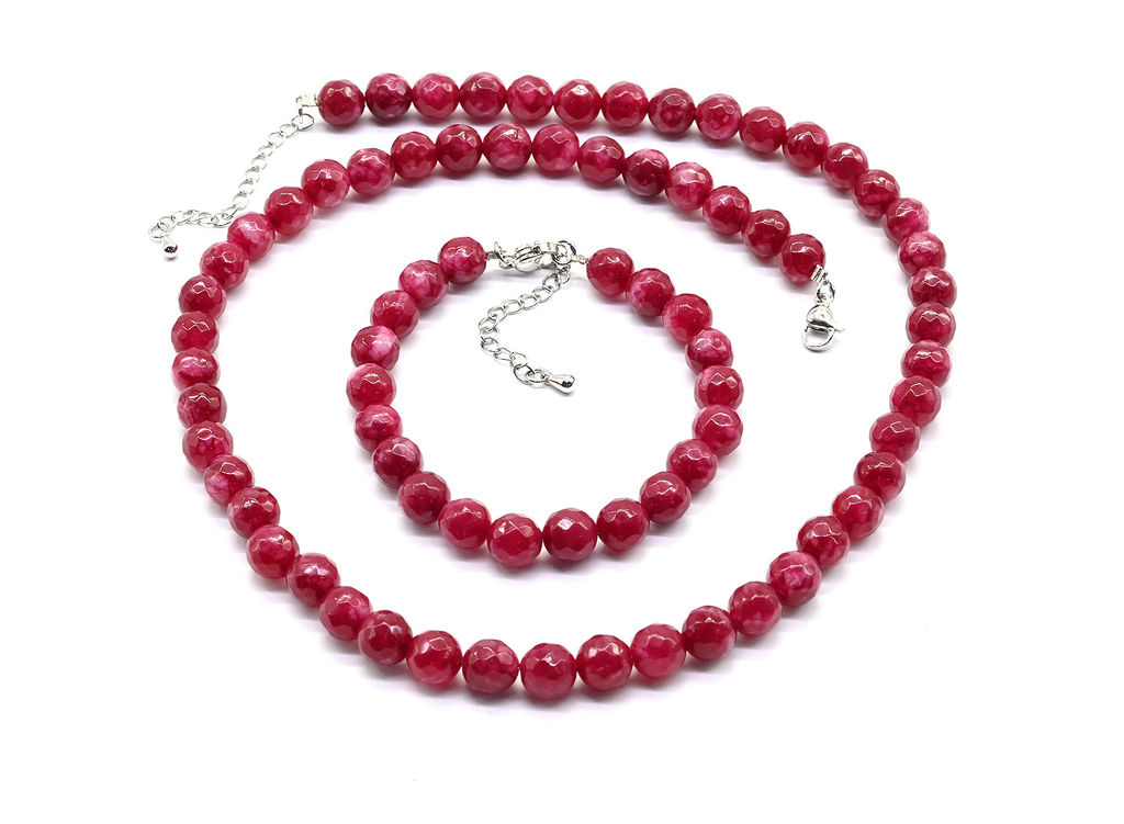 Бусы с браслетом из камня кальцит граненые 8мм цв.рубин, 48см