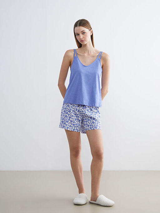 • Beli Lastikli ?i?ekli Kad?n ?ort Pijama Alt?