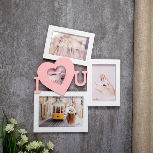 Фоторамка - коллаж на 4 фото 9?9, 10?15, 13?18 см Я люблю тебя, пластик, мультирамка, белая с розовым, 39.5?32 см