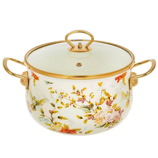 • Кастрюля эмал сталь, 4 л, крышка стекло, Цветущий сад, Y4-11360 индукция (513816)