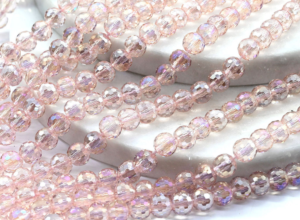 • Бусины из циркона шарик гр.6мм цв.розовый хамелеон, 39см, 75 бусин Радуга камня